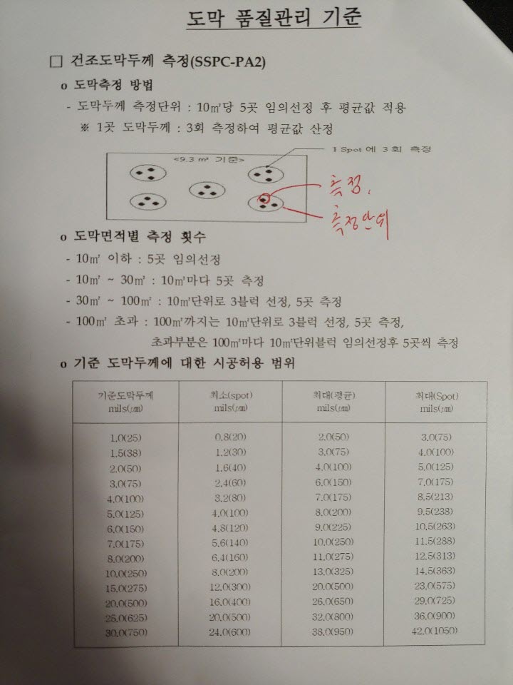 위 첨부사진은 도로공사의 품질기준인데 SSPC-PA2를 따르고 있다고 하는데